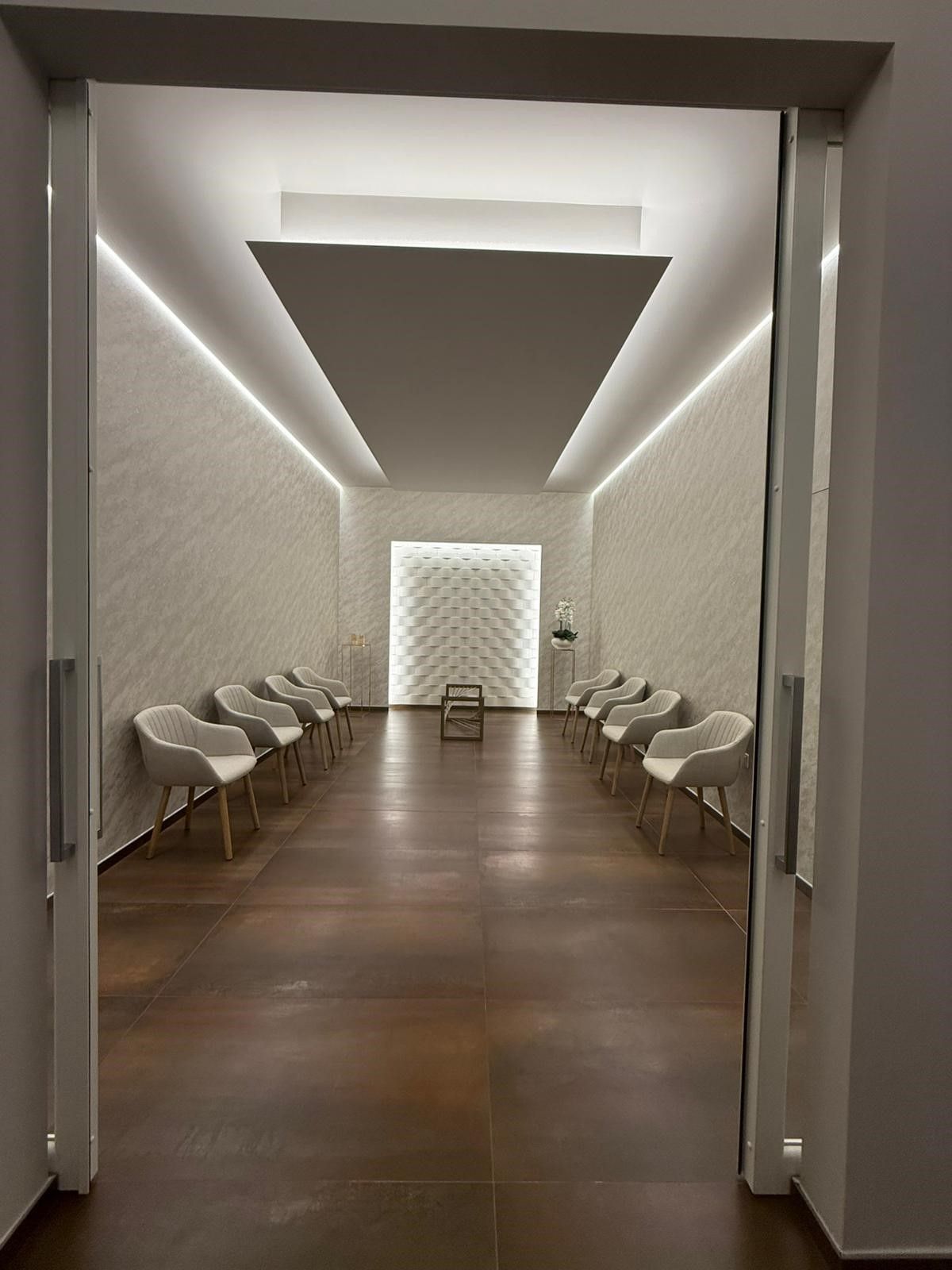 Situata nella Zona Industriale di Sant’Atto, in Via Giovanni Fabbri 8, la casa funeraria è concepita per accogliere i visitatori in un contesto sobrio e rispettoso. Qui è possibile vivere momenti di silenzio e riflessione, creando un ambiente ideale per ricordare e onorare la memoria della persona scomparsa. L’Oltre dispone di sale ampie e luminose, progettate per garantire comfort e discrezione. Ogni ambiente è arredato con sobrietà ed eleganza, affinché i familiari possano riunirsi per un ultimo saluto in un clima di raccoglimento. Le sale del commiato sono pensate per accogliere i visitatori con rispetto, offrendo uno spazio in cui la memoria del defunto possa essere custodita in tranquillità. Ogni dettaglio è curato con attenzione: luci soffuse, spazi di accoglienza e ambienti funzionali creano un’atmosfera protetta e serena.